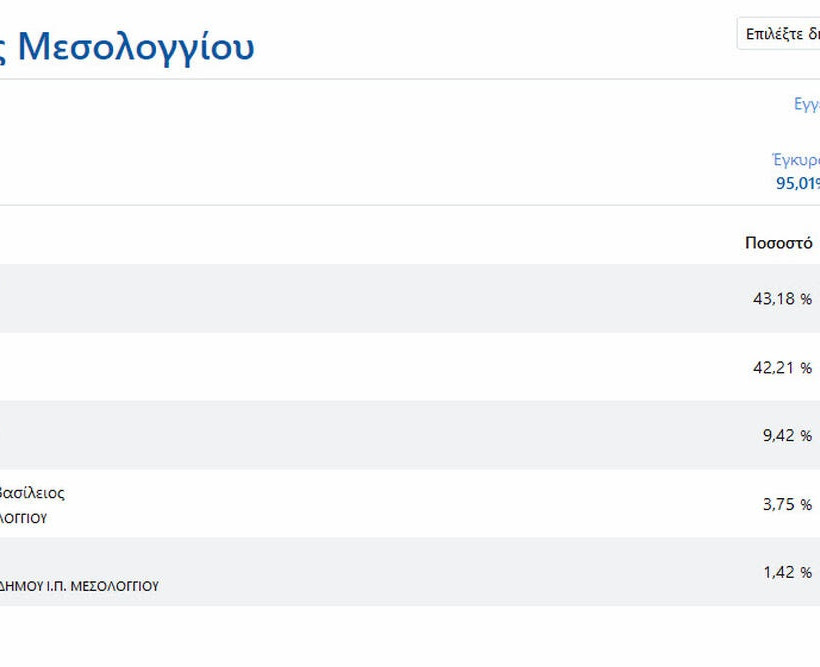 Αποτελέσματα Εκλογών 2019 LIVE: Δήμος Ιεράς Πόλης Μεσολογγίου Αιτωλοακαρνανίας - Ντέρμπι για δύο