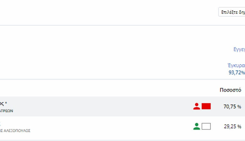 Πελοποννήσου: Παναγιώτης Νίκας με 53,35%