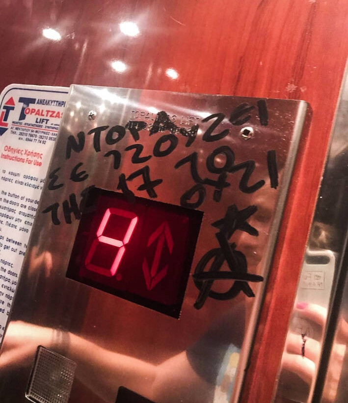«Το καθημερινό μου πρόγραμμα είναι δημοσιευμένο… Τους καλώ να έρθουν σε ένα από τα καφενεία που θα πάω να κουβεντιάσουμε» είπε η Ντόρα Μπακογιάννη απευθυνόμενη σε εκίνους που έγραψαν συνθήματα στο ασανσέρ του πολιτικού της γραφείου στα Χανιά.