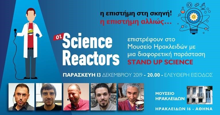 Oι  Science Reactors επιστρέφουν στο Μουσείο Ηρακλειδών με μια διαφορετική παράσταση Stand up Science - Την Παρασκευή 13 Δεκεμβρίου, στις 20:00 - Είσοδος ελεύθερη - Η επιστήμη στη σκηνή! Η επιστήμη αλλιώς…