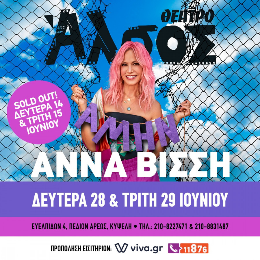 Μετά τις δύο - ήδη - sold out καλοκαιρινές συναυλίες της Άννας Βίσση στο Θέατρο Άλσος και μετά από απαίτηση των θαυμαστών της, επανέρχεται με 2 νέες ημερομηνίες!