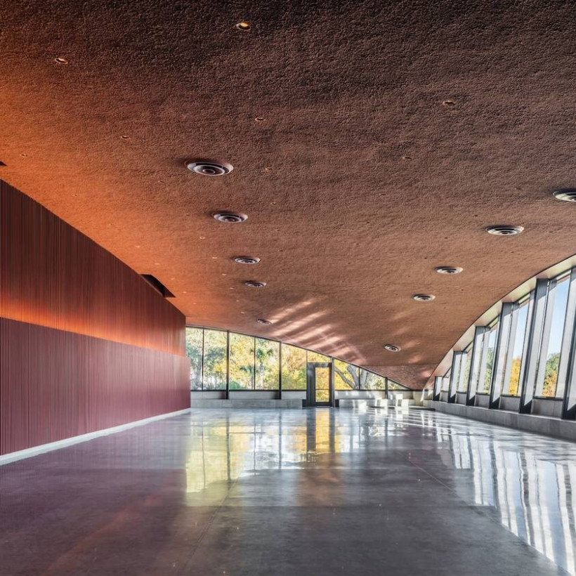 Και οι τρεις δομές - βιβλιοθήκη, κέντρο εκδηλώσεων και πρόστωο - είναι σε υπερυψωμένο επίπεδο, προσφέροντας γενναιόδωρα ανεμπόδιστη θέα στη λίμνη Mendsen. Έντονη είναι η παρουσία αψίδων, εμπνεόμενες από την τοπική χλωρίδα και την τοπική παραδοσιακή αρχιτεκτονική. Πολλά παράθυρα επιτρέπουν την είσοδο φυσικού φωτός στα κτήρια.