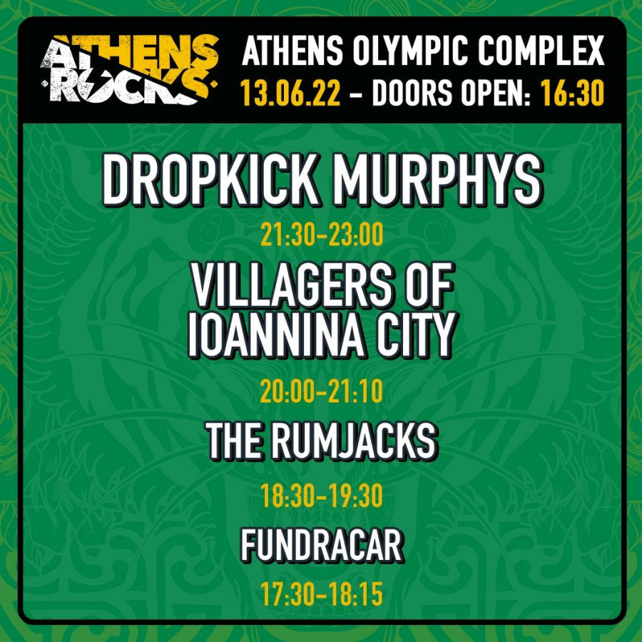 Οι θρυλικοί Dropkick Murphys μαζί με τους μοναδικούς Villagers Of Ioannina City συνθέτουν το ιδανικό δίδυμο για μια βραδιά που θα θυμόμαστε για καιρό στο Ολυμπιακό Σύμπλεγμα.