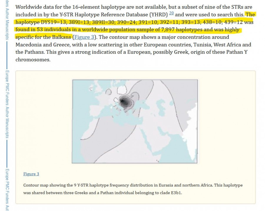 Επίσης, συνέκρινα τους δείκτες της υπο-ομάδας του πατέρα μου με τους τυπικούς βαλκανικούς δείκτες που λέγονται Y-STR, οι οποίοι χρησιμοποιήθηκαν σε μελέτη για τους Έλληνες απογόνους στο Πακιστάν, τους Κάλας. Το YDNA του αδέρφου μου περιλάμβανε όλους τους παραπάνω δείκτες. Δείτε τη σχετική μελέτη εδώ.