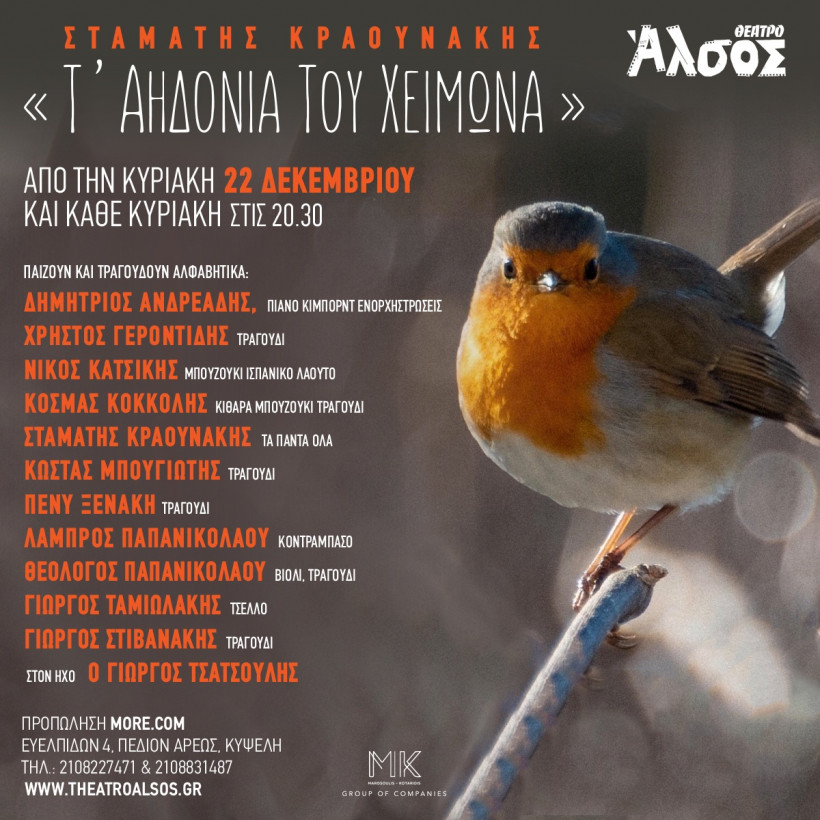 Σταμάτης Κραουνάκης «Τ’ Αηδόνια Του Χειμώνα» στο Θέατρο Άλσος από τις 22 Δεκεμβρίουκαι κάθε Κυριακή στις 20.30