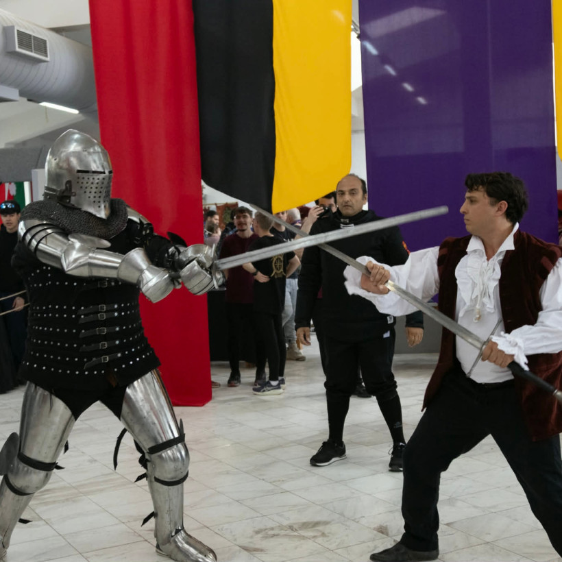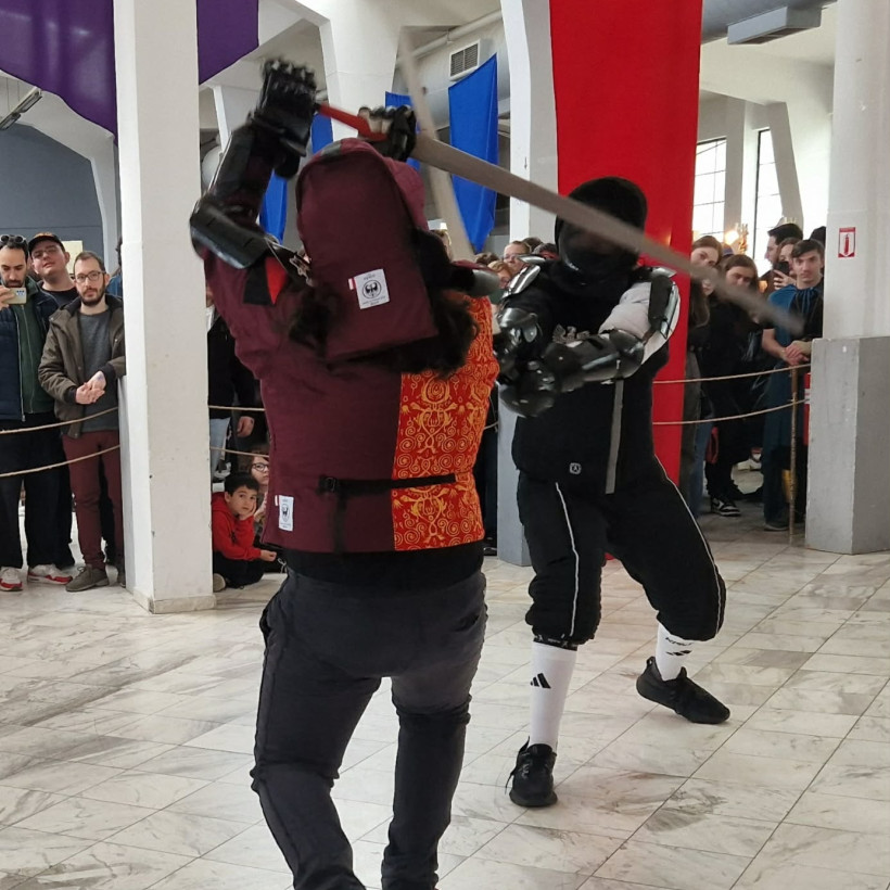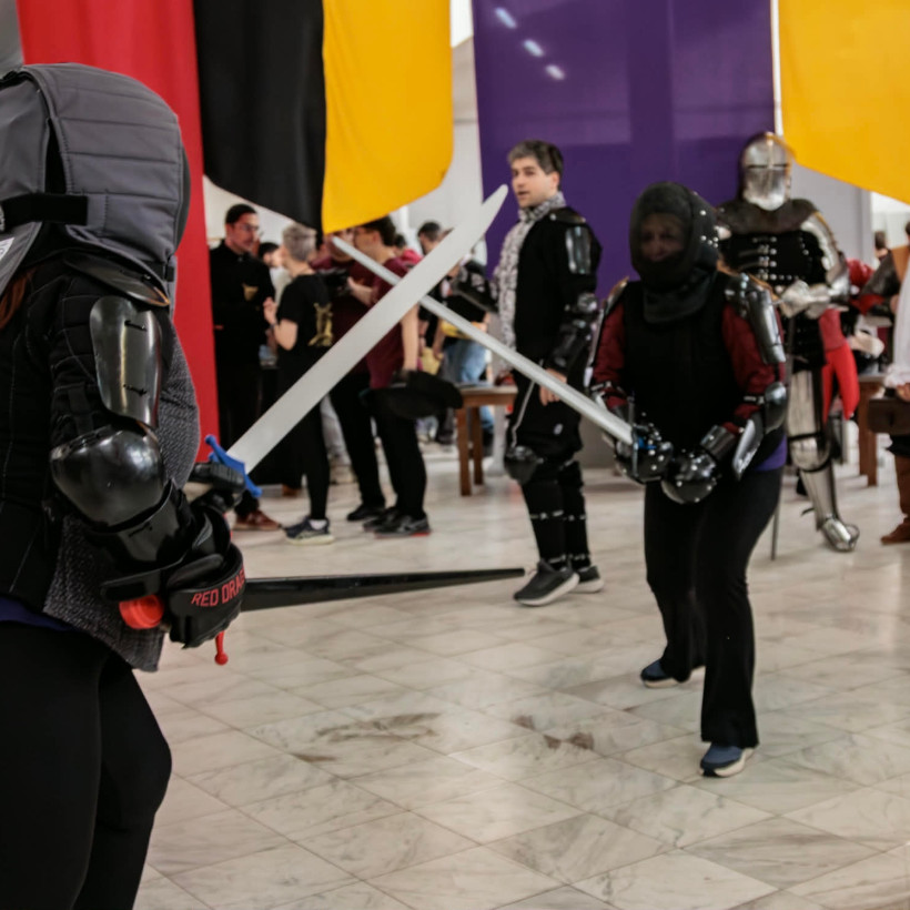 Μια Βιωματική Μεσαιωνική Εμπειρία για Όλες τις Ηλικίες Κατά τη διάρκεια του Medieval Fair, οι επισκέπτες είχαν την ευκαιρία να: Παρακολουθήσουν εντυπωσιακές επιδείξεις Ιστορικής Ξιφομαχίας (HEMA) με πραγματικό εξοπλισμό και τεχνικές εμπνευσμένες από αυθεντικές ιστορικές πηγές. Βυζαντινό καταφρακτο, βυζαντινό του 15ου αιώνα, ιππότες του Τάγματος του Αγίου Ιωάννου, δεσποσυνες του μεσαίωνα κτλ. Οι θεατές μπορούσαν να εμπλακούν σε διαδραστικές μονομαχίες με ασφαλή εκπαιδευτικά όπλα (foam/boffer fighting).