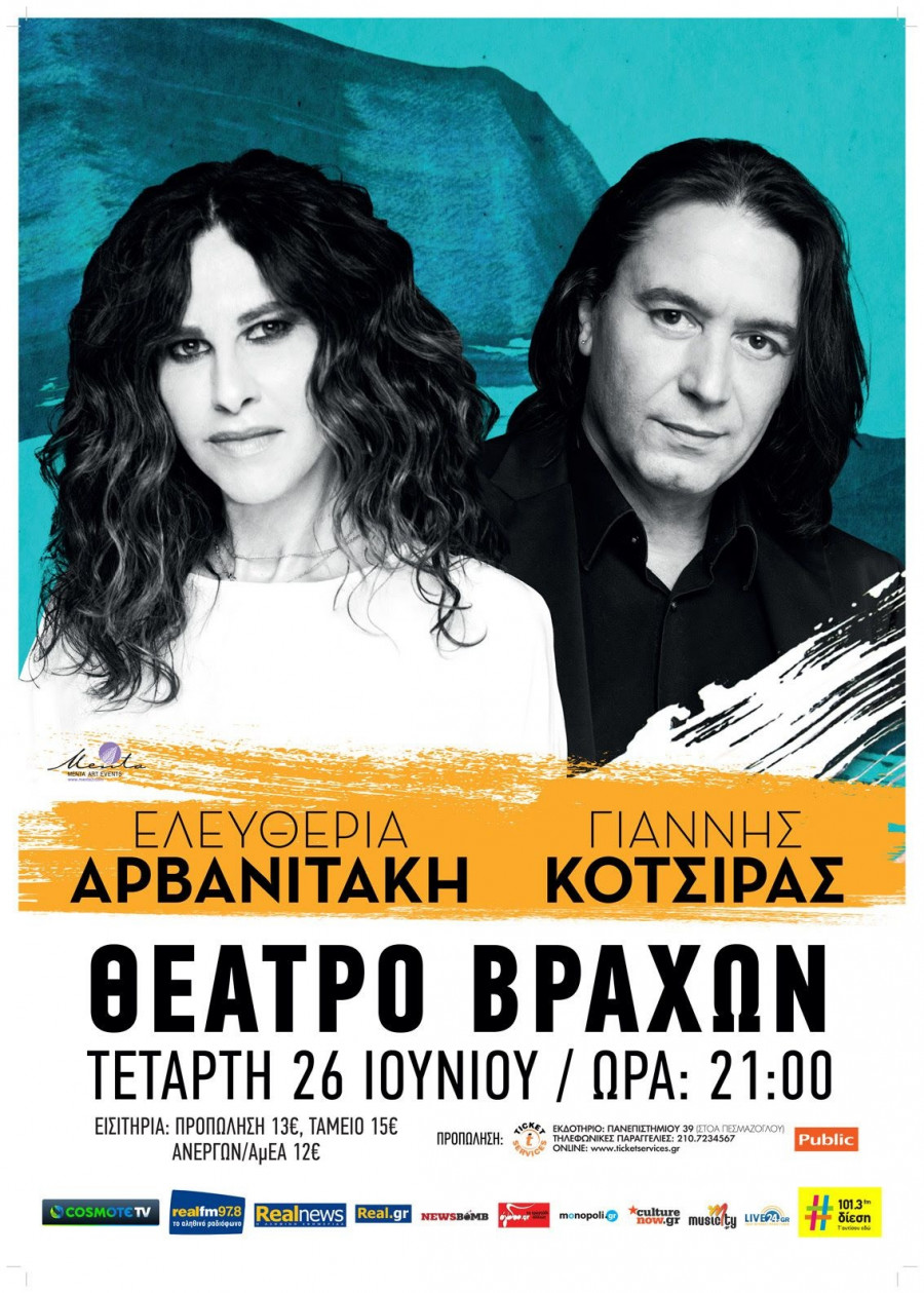 Φέτος, ξανασυναντήθηκαν επί σκηνής μετά από μία εικοσαετία και παρουσίασαν ένα πρόγραμμα γεμάτο από τις μεγάλες τους επιτυχίες, αλλά και από τραγούδια που αγαπούν και μας έκαναν να τα αγαπήσουμε ακόμα περισσότερο από τις ερμηνείες τους. Απ’ το «Δυνατά» και της «Καληνύχτας τα φιλιά» ως το «Κάθε φορά» και το «Εφάπαξ», από το «Μένω εκτός» ως την «Αλεξάνδρεια» και με αναφορές σε κλασσικά λαϊκά τραγούδια όπως τα «Θέλω κοντά σου να μείνω», «Πρώτη φορά», «Μη μου ξαναφύγεις πια μάγκα μου» και τα «Μαύρα μάτια σου» ως το «Κόκκινο φουστάνι» και τη «Χάντρα θαλασσιά», η Ελευθερία Αρβανιτάκη και ο Γιάννης Κότσιρας έμπλεξαν τραγούδια και διαθέσεις και παρέσυραν μαζί τους το κοινό που κάθε βραδιά γινόταν μαζί τους μια μεγάλη χορωδία.