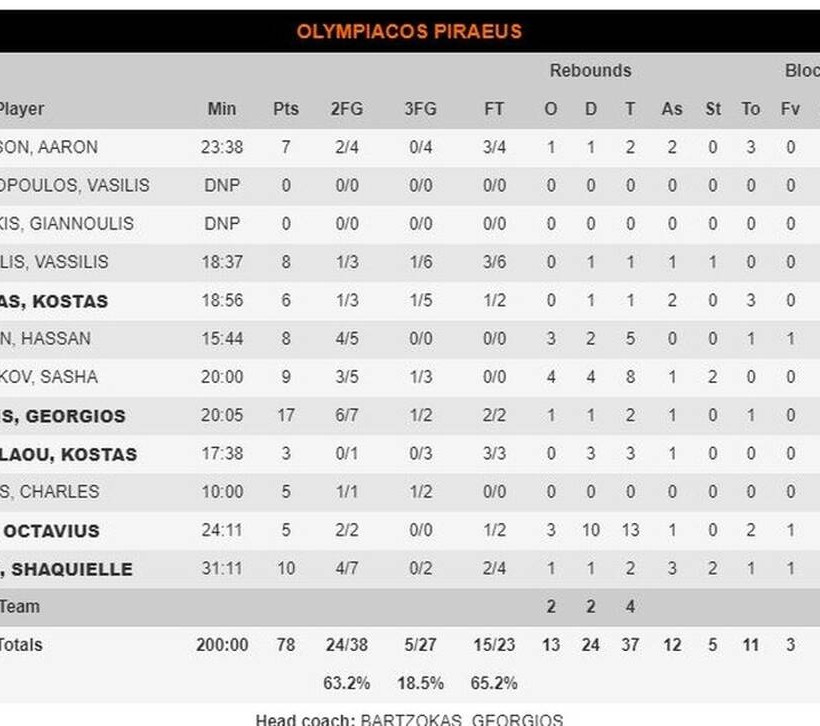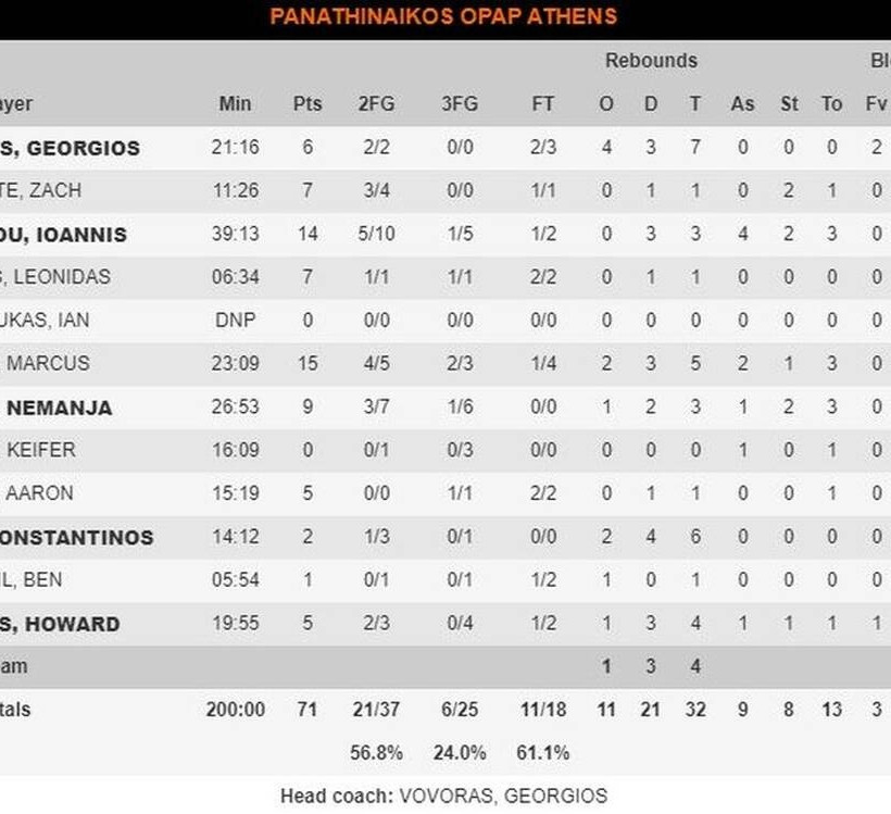 Το φωτορεπορτάζ και τα στατιστικά του αγώνα και η βαθμολογία της Euroleague