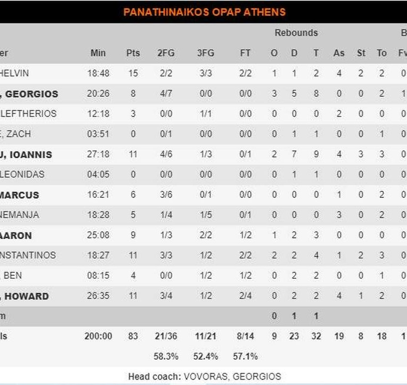 Τα στατιστικά του αγώνα