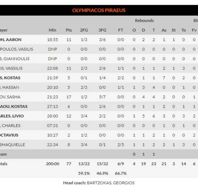 Ο Ολυμπιακός σούταρε 15/32 τρίποντα, που μεταφράζεται στο εξαιρετικό 46,9%, όμως, δεν κατάφερε να κερδίσει! Η ομάδα του Ιγκόρ Κοκόσκοφ πήγε το παιχνίδι εκεί που το ήθελε, «χτύπησε» στις αδυναμίες του Ολυμπιακού στη ρακέτα και κυριάρχησε κάτω από τα καλάθια. Αυτό είχε σαν αποτέλεσμα να κερδίσει στη μάχη των ριμπάουντ και να εκμεταλλευτεί την καλή κατάσταση του Βέσελι (17 πόντοι, 8/8 δίποντα, 4 ριμπάουντ), για να επιστρέψει στο ματς, να θέσει τους δικούς της όρους και στο φινάλε να πάρει τη νίκη.