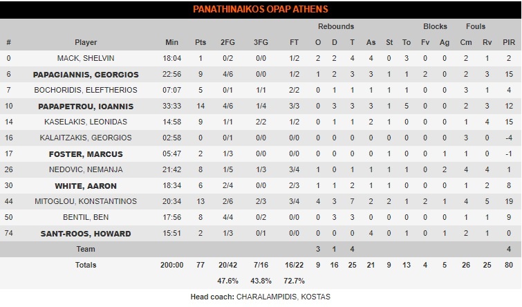 Τα στατιστικά του Παναθηναϊκού