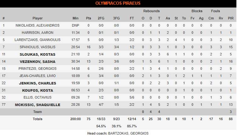 Μια νίκη που θα τους βοηθήσει πολύ στο ψυχολογικό κομμάτι πήραν οι «ερυθρόλευκοι», έχοντας μεγάλο πρωταγωνιστή τον αρχηγό τους, ο οποίος έκανε season-high με 16 πόντους (3/3διπ., 3/4τρ., 1/2βολ.).