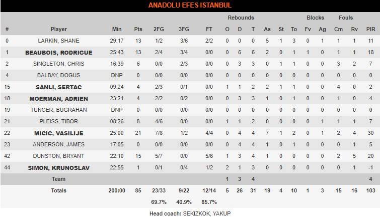 Κάπως έτσι όταν η τουρκική ομάδα πάτησε λίγο γκάζι κατάφερε να αποκτήσει σημαντική διαφορά, έχοντας πρωταγωνιστές του Βασίλιε Μίτσιτς και Σέιν Λάρκιν. Αυτή ήταν η ένατη νίκη της στα τελευταία δέκα ματς.