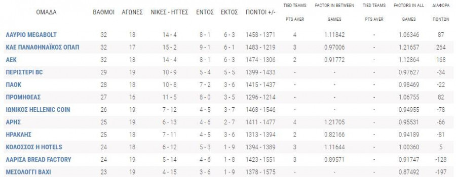 Από την άλλη, ο Άρης που είχε κορυφαίο τον Βλάντιμιρ Ντραγκίτσεβιτς (18 πόντοι, 8 ριμπάουντ) μετρά 6 νίκες - 13 ήττες και 7 ήττες σε 9 εκτός έδρας αναμετρήσεις.
