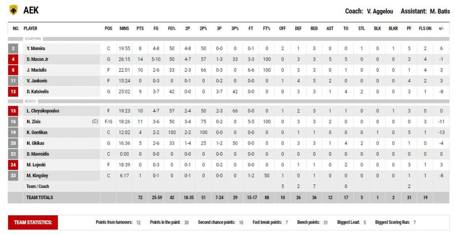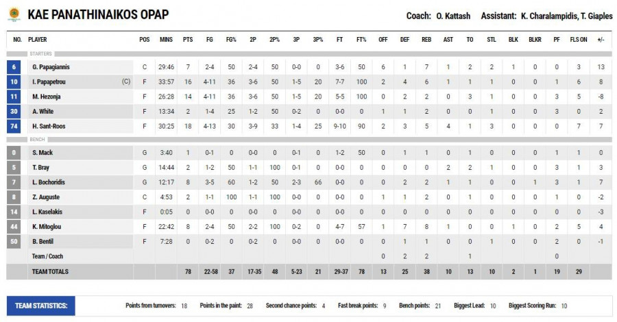 Ο Ματσιούλις ήταν άστοχος σε τρίποντο και στην επόμενη φάση ο Ουάιτ κάρφωσε (το πρώτο του καλάθι στο ματς) για το 78-72, στα 30.7'' πριν το φινάλε. Ο Κατσίβελης δεν βρήκε ούτε αυτός στόχο έξω από τα 6μ75 κι εκεί όλα τελείωσαν.