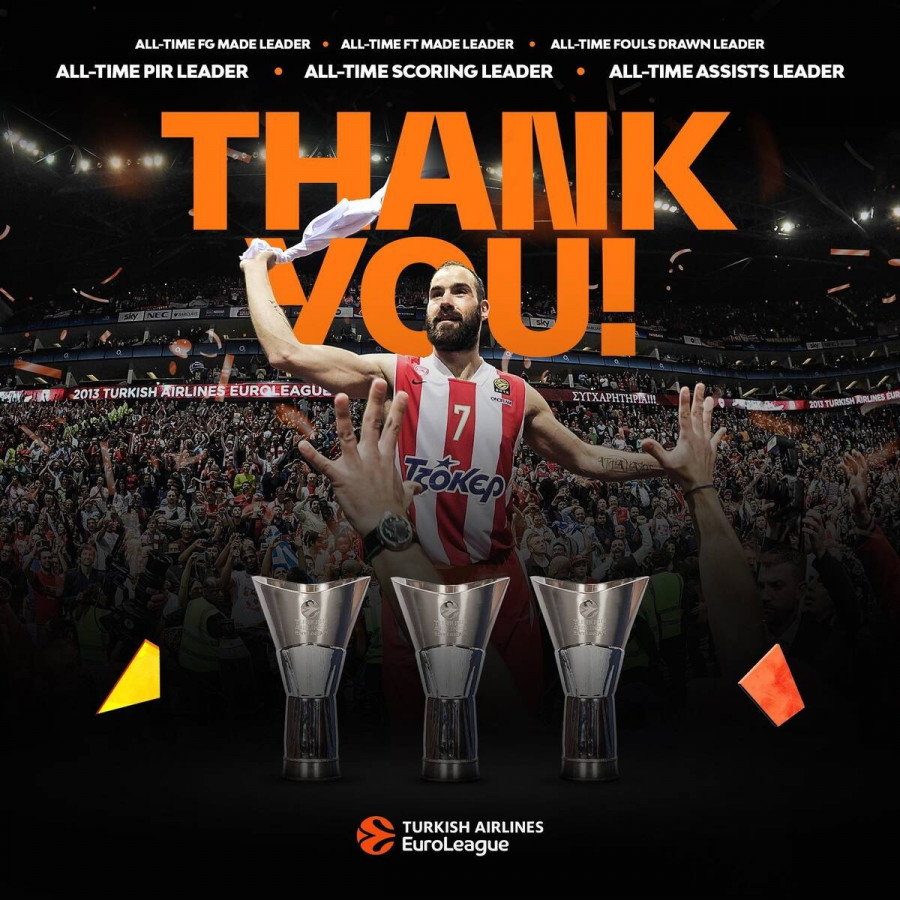 Ο «Kill Bill» αποχαιρετά την Euroleague με 358 συμμετοχές, 9379:14 λεπτά ιδρώτα στα παρκέ, ενώ έχει σημειώσει και τους περισσότερους πόντους από οποιονδήποτε άλλο στην Ιστορία της διοργάνωσης (4.455), αλλά και του Κυπέλλου Πρωταθλητριών! Επίσης, είναι πρώτος στη Euroleague σε εύστοχα σουτ εντός πεδιάς (1.403), σε ασίστ (1.607) και σε index rating (σύστημα αξιολόγησης, 4.183).