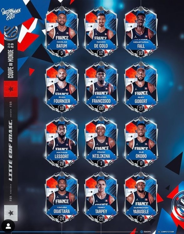 Κανονικά στην αποστολή είναι και τα αστέρια των Γάλλων απ’ το ΝΒΑ, Ρούντι Γκομπέρ, Εβάν Φουρνιέ, Νικολά Μπατούμ και Φρανκ Ντιλικινά. Οι Γάλλοι είναι στον όμιλο με Λετονία, Λίβανο και Καναδά.