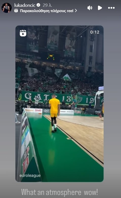 Παναθηναϊκός AKTOR: Ο Σλοβένος σούπερ σταρ των Μάβερικς πόσταρε στα social media video από την ατμόσφαιρα στο ΟΑΚΑ και δεν έκρυψε τον θαυμασμό του.