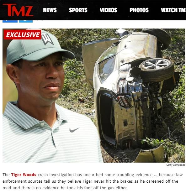 Σύμφωνα με το TMZ, ο Γουντς δεν δεν πάτησε ποτέ φρενό κατά τη διάρκεια του ατυχήματος
