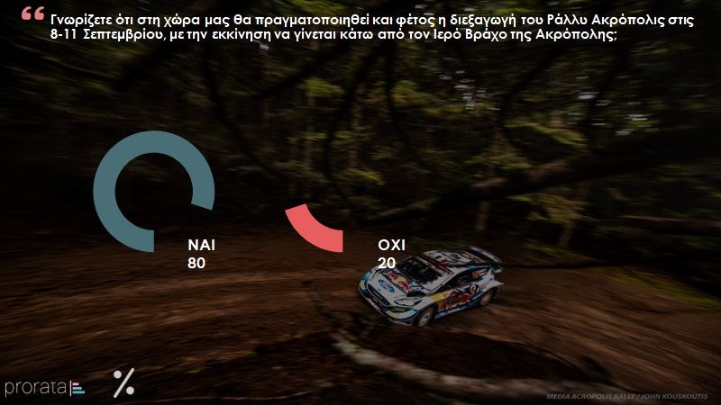 Το 80% των συμμετεχόντων στην έρευνα απάντησε πως γνωρίζει ότι θα πραγματοποιηθεί και φέτος το Ράλλυ Ακρόπολις με την εκκίνηση να δίνεται στον Ιερό Βράχο της Ακρόπολης.