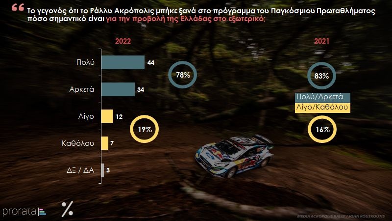 Σε έρευνα της Prorata για το Ράλλυ Ακρόπολις, το 78% των πολιτών απάντησε ότι έχει μεγάλη σημασία για την προβολή της Ελλάδας στο εξωτερικό.