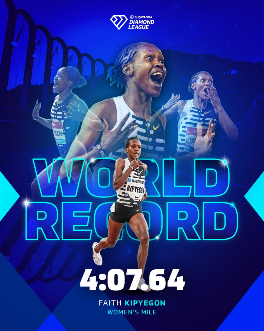 Το εντυπωσιακό είναι πως η Κίπιεγκον έχει καταρρίψει τρία παγκόσμια ρεκόρ σε μόλις δύο μήνες, καθώς πέρα από το 1 μίλι, είχε κάνει το ίδιο σε 1.500 και 5.000 μέτρα.