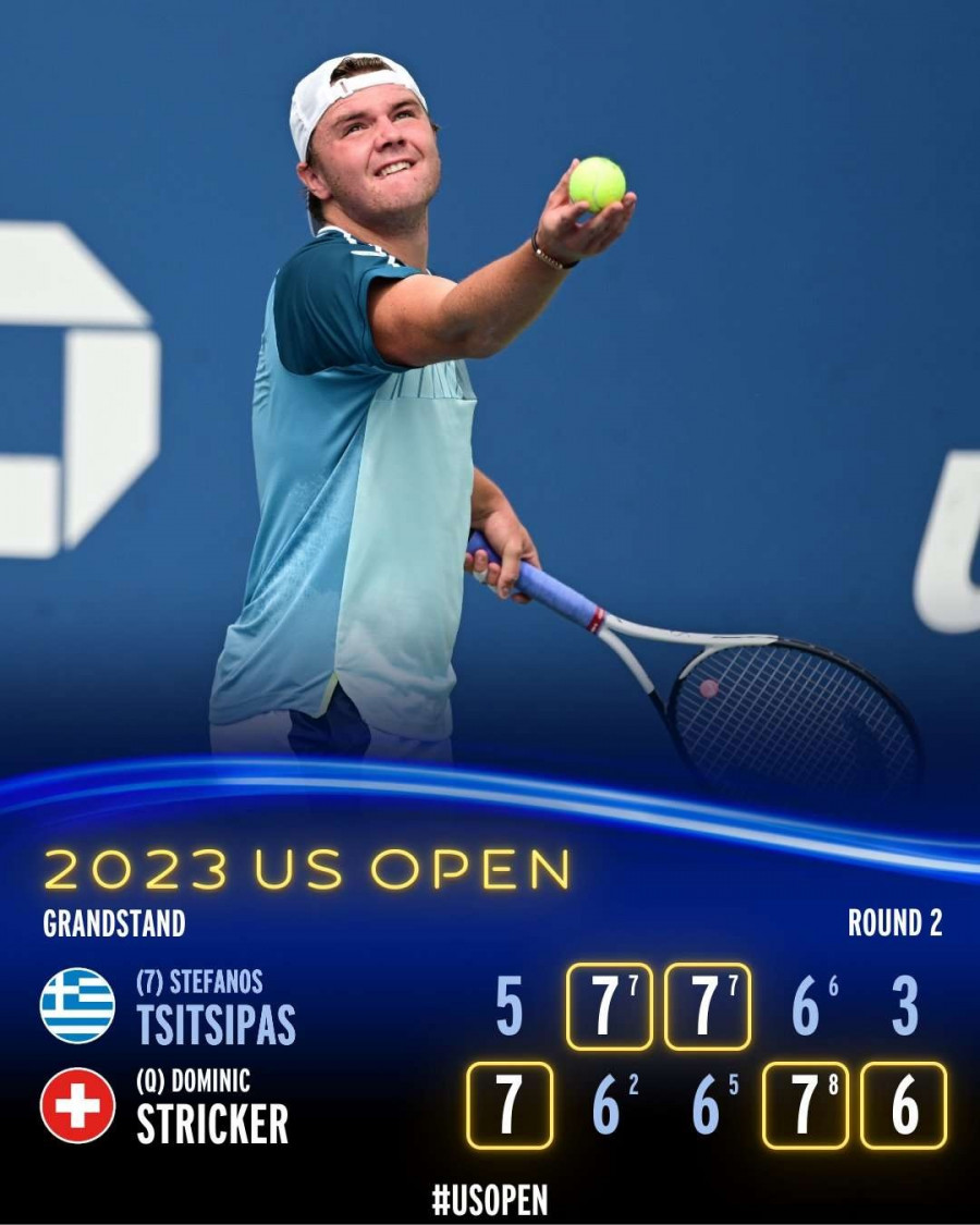 Εκπληκτικό παιχνίδι για τον 2ο γύρο του US Open μεν, στενάχωρη κατάληξη για τον Στέφανο Τσιτσιπά δε. Ο Έλληνας τενίστας έπεσε... θύμα μεγάλης έκπληξης και μετά από ματσάρα που κρίθηκε στο πέμπτο σετ και είχε τρία tie breaks, είδε τον Ντομινίκ Στρίκερ (Νο128 του κόσμου) να τον νικά με 3-2 και να τον αφήνει εκτός συνέχειας.