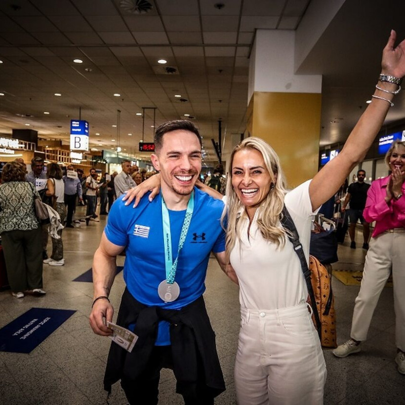 Ο Έλληνας πρωταθλητής επέστρεψε στην Ελλάδα το μεσημέρι της Κυριακής με εμφανή την ικανοποίησή του για την επιτυχία του. Μαζί του ήταν και η σύζυγός του Βασιλική Μιλλούση με τις κόρες τους και όλοι μαζί φωτογραφήθηκαν με το μετάλλιο και το εισιτήριο για το Παρίσι στα χέρια.