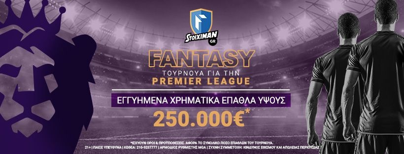 Η «άμμος» στην κλεψύδρα αδειάζει, την Παρασκευή 9 Αυγούστου ξεκινά το δημοφιλέστερο πρωτάθλημα του κόσμου, η. Στο παιχνίδι μπαίνεις κι εσύ, με το τουρνουά Fantasy του Stoiximan.gr, με εγγυημένα χρηματικά έπαθλα ύψους 250.000 ευρώ*!