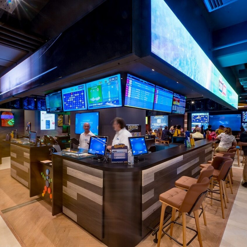 Στο  νέο  υπερσύγχρονο κατάστημα ΟΠΑΠ εντός του γηπέδου της ΑΕΚ, οι μεταδόσεις των αγώνων ζωντανεύουν και οι επισκέπτες ζουν το παιχνίδι σε έντονο ποδοσφαιρικό κλίμα.