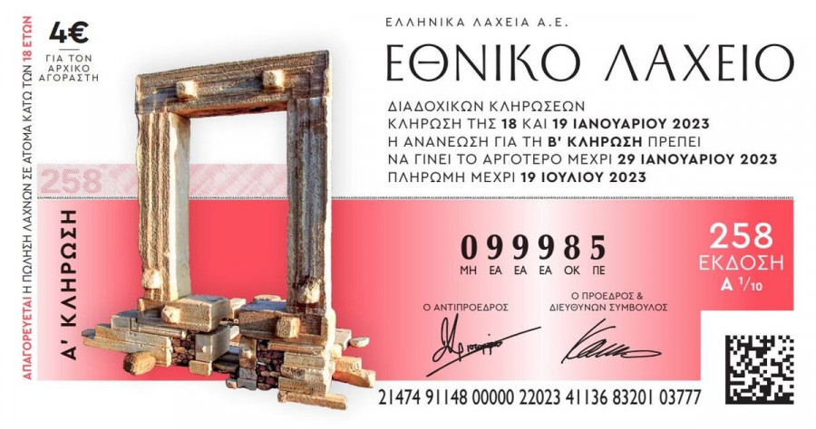 Η 258η έκδοση του ιστορικού παιχνιδιού – η πρώτη για το νέο έτος – προσφέρει το εγγυημένο έπαθλο του 1.000.000 ευρώ. Παράλληλα, οι παίκτες του Εθνικού Λαχείου έχουν την ευκαιρία να διεκδικήσουν πολλά ενδιάμεσα κέρδη έως και 100.000 ευρώ, με 100 έπαθλα ανά υποκλήρωση, εκ των οποίων τουλάχιστον δύο μοιράζουν τουλάχιστον 10.000 ευρώ.
