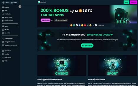 Το Mega Dice Casino παρέχει μια ολοκληρωμένη γκάμα παιχνιδιών, όπως κουλοχέρηδες, επιτραπέζια παιχνίδια και παιχνίδια live casino. Όλα τους με έμφαση στο δίκαιο παιχνίδι και τη διαφάνεια. Οι νέοι παίκτες μπορούν να επωφεληθούν από ένα μπόνους καλωσορίσματος 200% έως 1 BTC, καθώς και 50 δωρεάν περιστροφές.