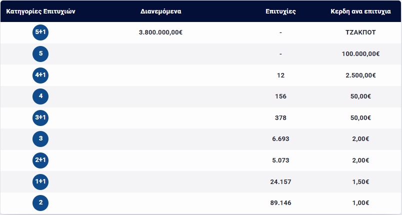 Υπενθυμίζεται πως οι κληρώσεις του Τζόκερ πραγματοποιούνται κάθε Τρίτη, Πέμπτη και Κυριακή στις 22:00.
