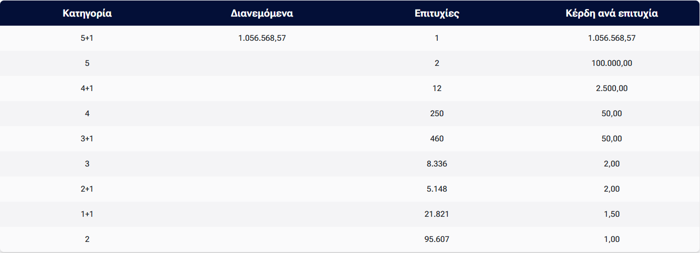 Οι τυχεροί αριθμοί που ανέδειξε η αποψινή κλήρωση