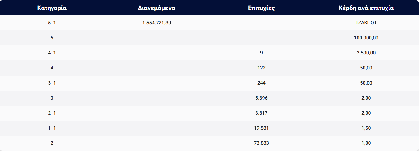 Οι τυχεροί αριθμοί που ανέδειξε η αποψινή κλήρωση