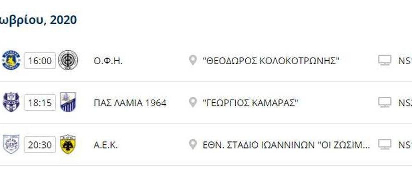 Το πρόγραμμα της Κυριακής περιλαμβάνει τρεις αναμετρήσεις, με τη δύσκολη έξοδο της ΑΕΚ στα Γιάννινα να ξεχωρίζει. Επίσης, θα διεξαχθούν τα ματς Αστέρας Τρίπολης-ΟΦΗ (16:00) και Απόλλων Σμύρνης-ΠΑΣ Λαμία (18:15).