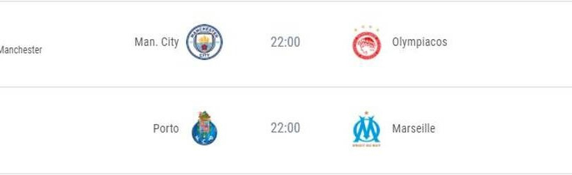 Α' όμιλος: Λοκομοτίβ Μόσχας-Ατλέτικο Μαδρίτης (19:55 - CosmoteSport5HD), Σάλτσμπουργκ-Μπάγερν Μονάχου (22:00 - Cosmotesport8HD)