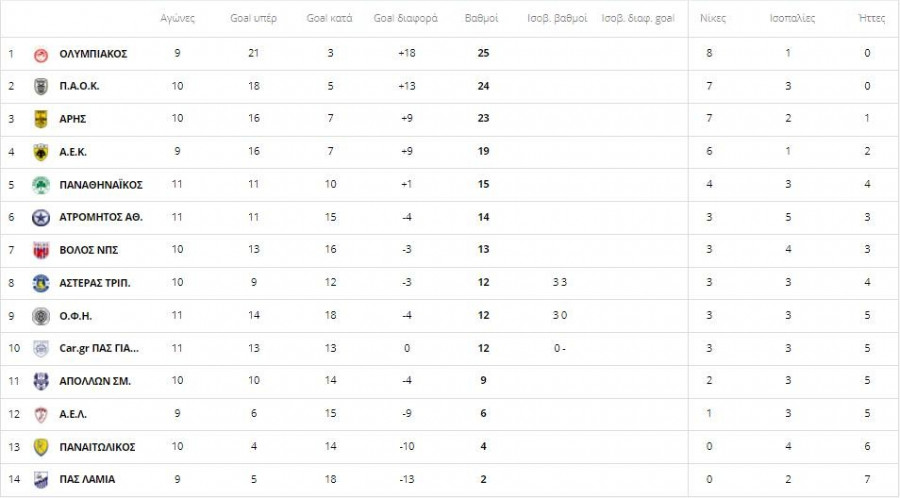 Από την άλλη πλευρά, η ΑΕΚ «έπεσε» στην τέταρτη θέση και βρίσκεται πλέον στο -6 από τον πρωτοπόρο Ολυμπιακό και στο -5 από τον δεύτερο ΠΑΟΚ (έχει ένα ματς περισσότερο). Είναι χαρακτηριστικό ότι ο Παναθηναϊκός την πλησίασε στους 4 βαθμούς.