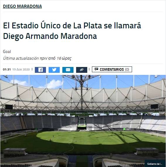 Ντιέγκο Μαραντόνα: Το όνομα του «Θεού» της μπάλας πήρε το στάδιο της πόλης Λα Πλάτα, στην οποία εργαζόταν μέχρι τον θάνατο του.