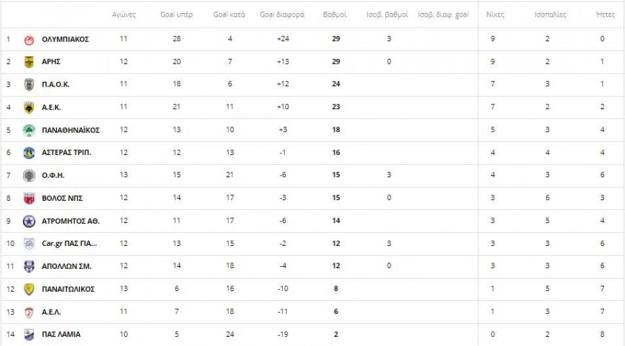 Οι «κίτρινοι» μετά τη νίκη κόντρα στον ΠΑΟΚ στο ντέρμπι της Θεσσαλονίκης, επικράτησε 3-0 στην έδρα του ΟΦΗ κι ανέβηκε στην κορυφή του βαθμολογικού πίνακα μαζί με την ομάδα του Πειραιά. Οι «ερυθρόλευκοι», βέβαια, έχουν ένα ματς λιγότερο.