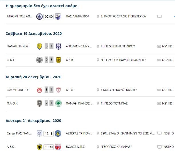 Ολυμπιακός – Λάρισα 5-1 (25΄ Σουντανί, 40΄, 88΄ Ελ Αραμπί, 65΄ Μασούρας, 79΄ Μπρούμα - 33΄ Πινακάς)