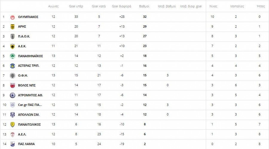 Ο Ολυμπιακός θα κάνει γιορτές... μόνος στην κορυφή, ενώ μολονότι «χρωστάει» το ντέρμπι με τον ΠΑΟΚ, θα είναι δεδομένα πρώτος στο τέλος του πρώτου γύρου κι έτσι εξασφάλισε από σήμερα τον άτυπο τίτλο του πρωταθλητή χειμώνα.