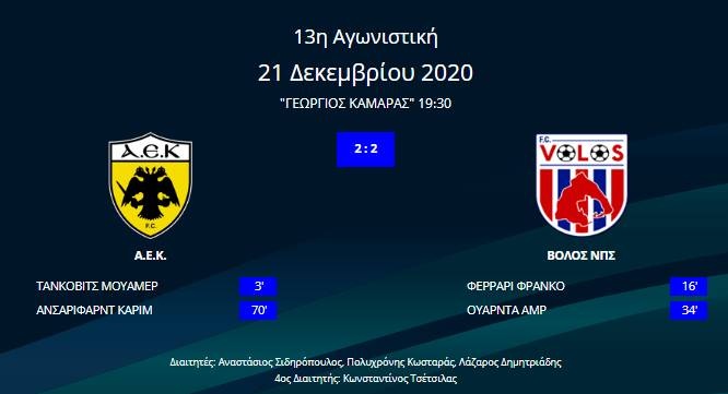 Super League: Η ΑΕΚ αντιμετώπισε για ακόμα ένα ματς πολλά προβλήματα, έμεινε στο 2-2 με τον Βόλο και δεν κατάφερε να «σπάσει» την κατάρα που την κυνηγά στα ματς πριν από τα Χριστούγεννα