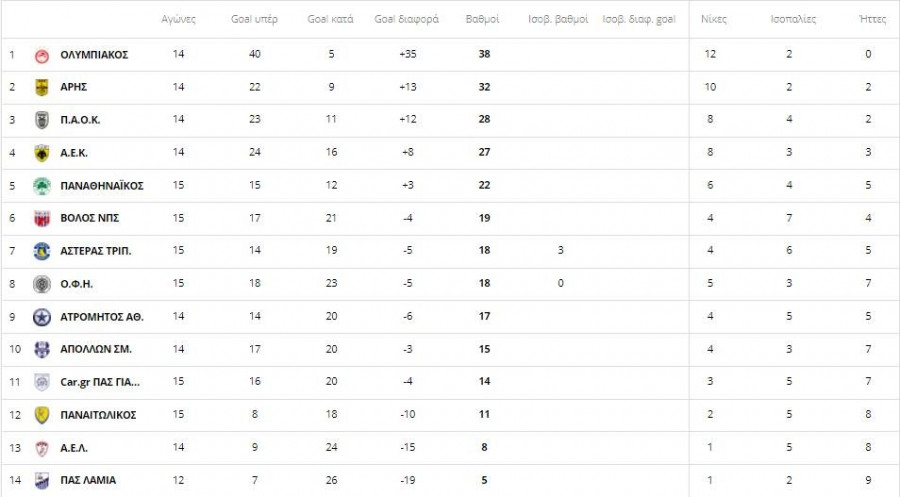 Super League: Δείτε όλα τα γκολ και πως διαμορφώθηκε η βαθμολογία μετά τους αγώνες της 15ης αγωνιστικής στο ελληνικό πρωτάθλημα