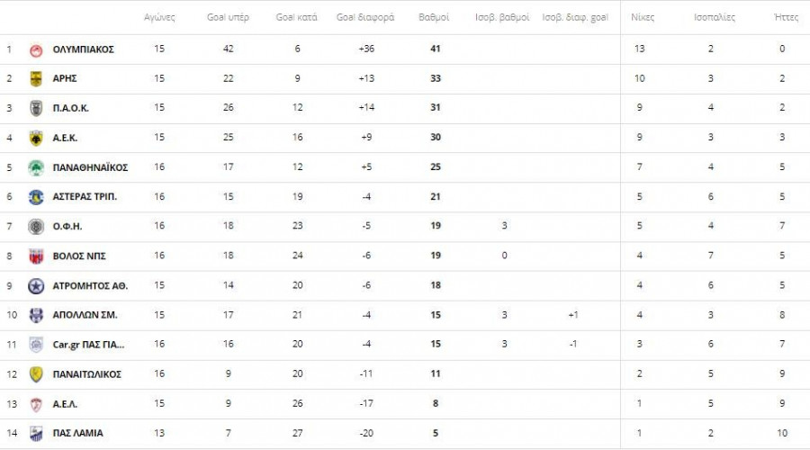 Η βαθμολογία της Super League πριν το ντέρμπι
