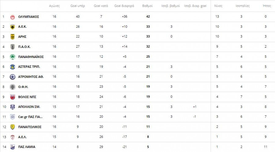 Super League: Η βαθμολογία μετά το Άρης - ΑΕΚ - Όλα τα γκολ της ημέρας (videos+photos)