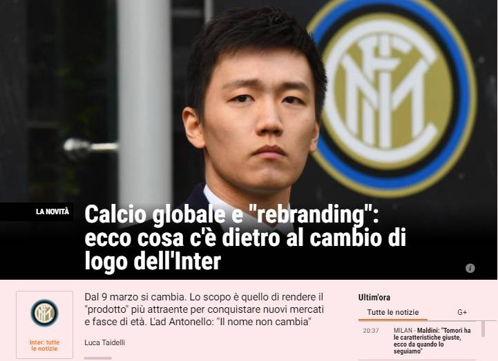 Σύμφωνα με όσα αναφέρει η Gazzetta dello Sport, ο σύλλογος θα προχωρήσει σε αλλαγή τόσο της ονομασία της, όσο και του σήματος της. Συγκεκριμένα αυτό θα συμβεί στις 9 Μαρτίου, ανήμερα των γενεθλίων για τη συμπλήρωση 113 χρόνων ζωής.