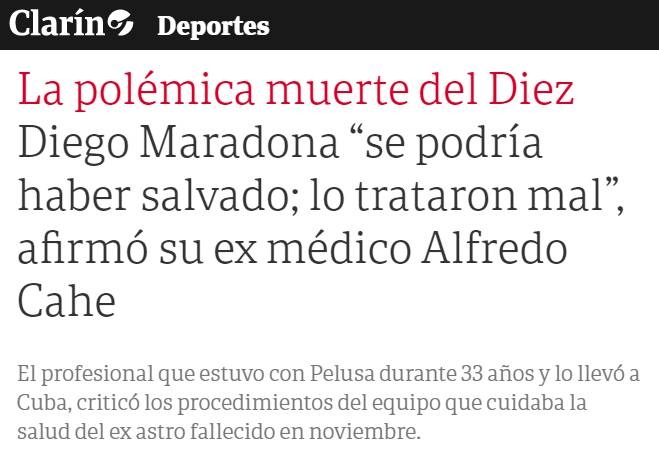 «Θα μπορούσε να είχε σωθεί. Δεν έχω καμία αμφιβολία ότι όλες οι ιατρικές κινήσεις ήταν κακές, πολύ κακές. Έδιναν την εντύπωση ότι δεν ήταν γιατροί. Έμοιαζε με… ερείπιο. Όλα του τα προβλήμαυα θα μπορούσαν να είχαν αντιμετωπιστεί, ο Ντιέγκο θα μπορούσε να είχε θεραπευτεί», ήταν τα λόγια του στο τηλεοπτικό κανάλι ΤΝ.