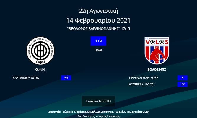 Ο Βόλος ήταν εξαιρετικός στο πρώτο ημίχρονο της αναμέτρησης με τον ΟΦΗ κι έφυγε με τη νίκη (2-1) από το Ηράκλειο. Οι φιλοξενούμενοι αιφνιδίασαν τον αντίπαλο τους και στο 22' βρέθηκε μπροστά με 2-0! Η ομάδα της Κρήτης προσπάθησε να αντιδράσεις, είχε δύο δοκάρια, αλλά το μόνο που κατάφερε ήταν να μειώσει με τον Καστάνιος.