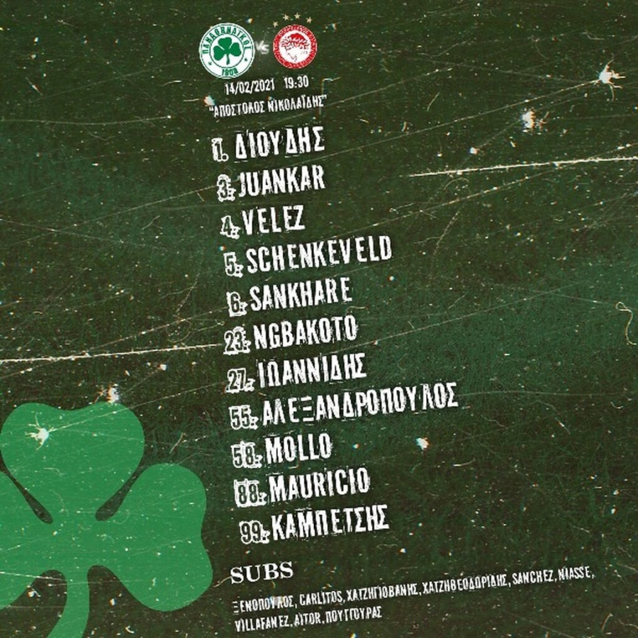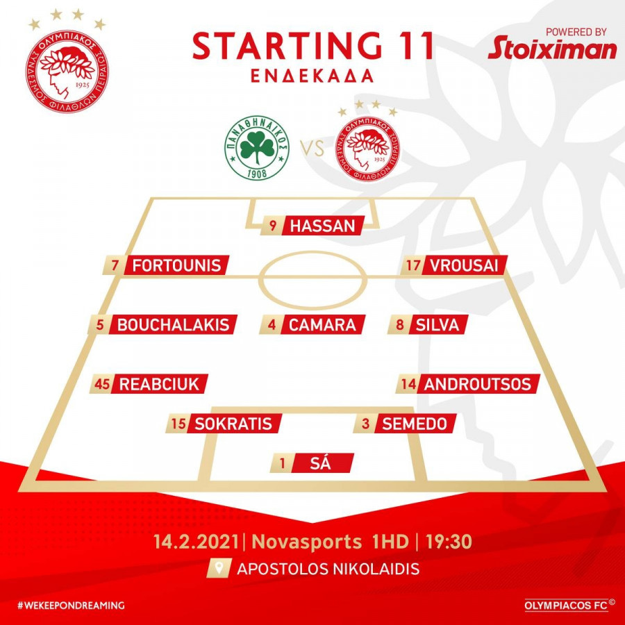 Ο Ρουμάνος τεχνικός του Παναθηναϊκού επέλεξε για την ενδεκάδα δύο από τα τρία αποκτήματα του Ιανουαρίου, τους Σανκαρέ και Ενγκμπαγκοτό, ενώ έχει στην κορυφή της επίθεσης τον Ιωαννίδη. Από την άλλη, ο τεχνικός του Ολυμπιακού επέλεξε τον Χασάν ως αιχμή του δόρατος στην επίθεση, ενώ στο κέντρο της άμυνας θα βρίσκονται οι Σεμέδο και Παπασταθόπουλος.